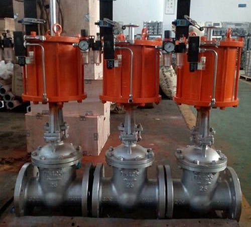 Z641HPN16~25-氣動閘閥由楔式法蘭(lán)閘(zhá)閥+氣動(dòng)執行(háng)器兩大部分組(zǔ)成,(通(tōng)過二位五通電磁閥操作進氣出氣控製開(kāi)關)廣泛應用(yòng)於電(diàn)力、石油、化工、環保、冶金等部門廣泛用於(yú)對(duì)各類介質接通或截斷的控製