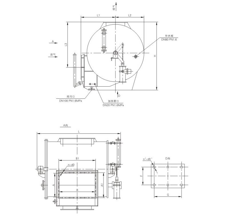 1.水封逆止閥主要由閥(fá)體、回轉蓋、閥軸(zhóu)、氣(qì)動裝置及注水裝置、溢流(liú)裝置、水位控製裝置、加熱與保溫裝置(zhì)等組成。