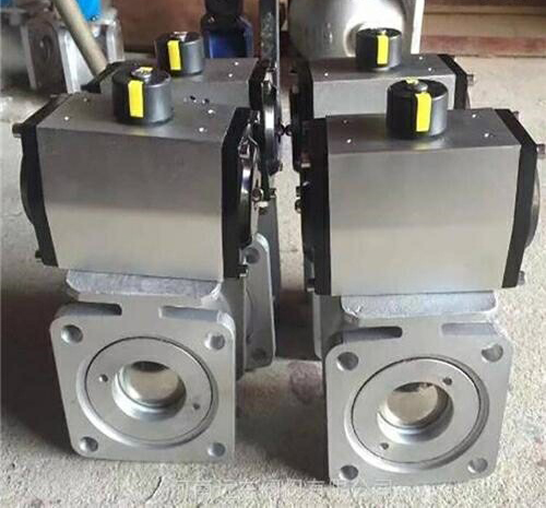 采用新型係列GT型氣(qì)動執行器,有雙作用式和單作用式(彈簧(huáng)複位),齒輪傳動,安(ān)全可靠(kào);大口徑閥門采用係列AW型氣動執行器拔叉式傳動,結(jié)構合理,輸出扭矩大,有雙作用式和單作用式。